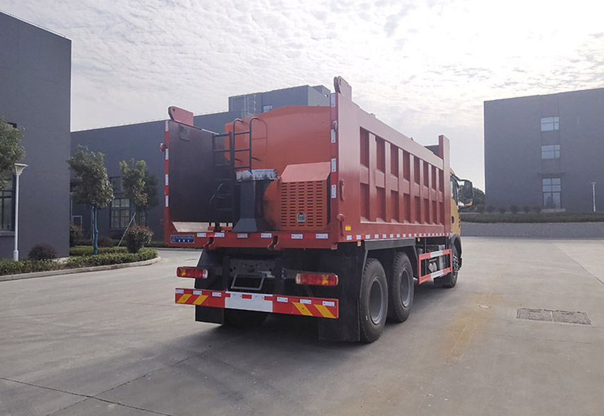 上裝配置 箱體采用優質碳鋼板,標配10立方撒布機也可以選裝12立方,不銹鋼撒布機甩盤,撒布盤直徑550mm,撒布機采用 V 型料倉,結構簡單可靠,使融雪劑自動落料,出料完全,無殘留,箭頭燈、篷布、過濾網、后爬梯。加裝3.5米雪鏟,可切換3.5米除雪滾刷(滾刷可選自帶動力或者液壓取力)。