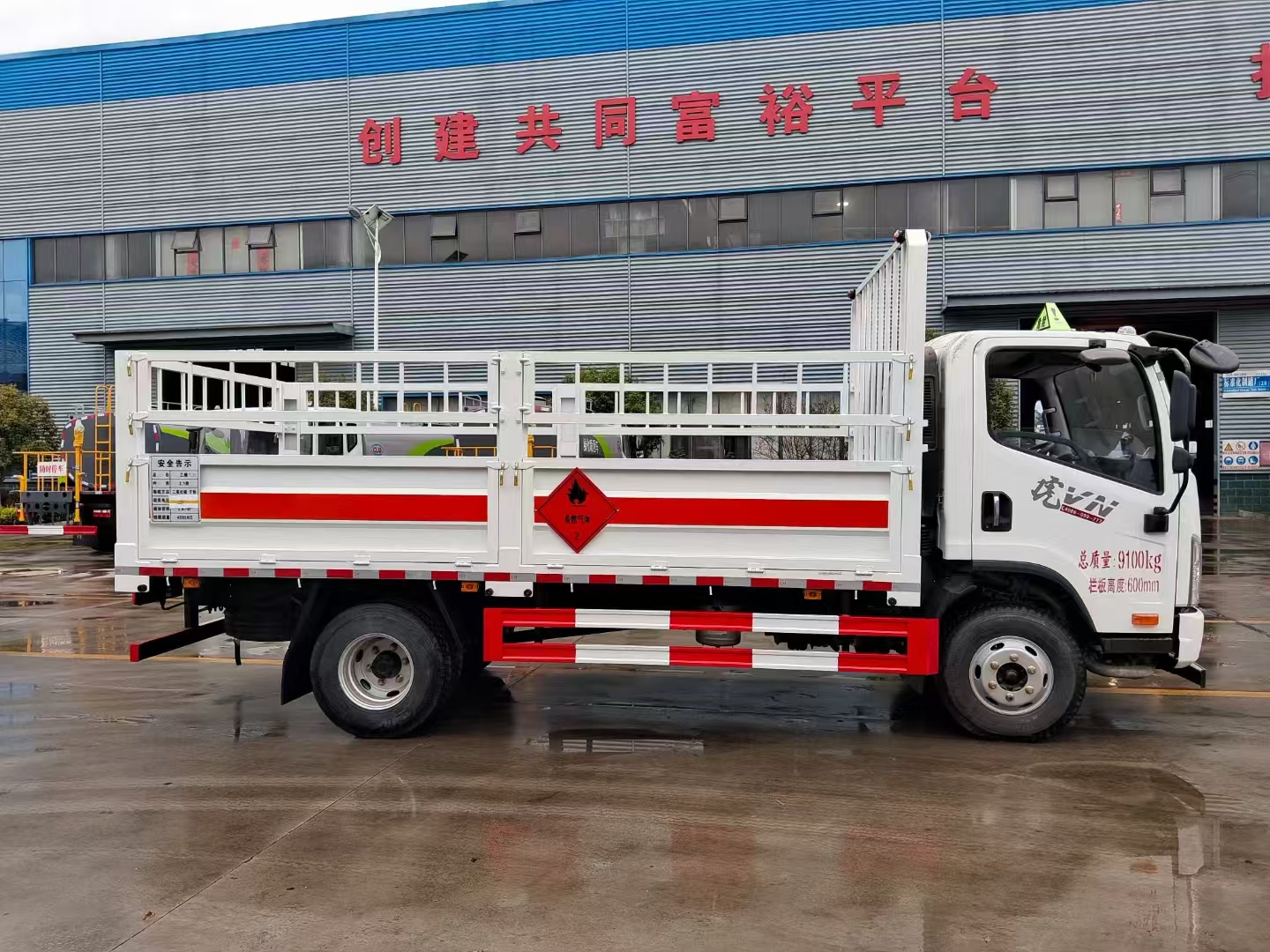 底盤配置 虎VN平頂單排駕駛室,錫柴CA4DB1A14E68,6GS42,270沖焊橋(速比4.875、輪距1640),速比4.875,7.50R1616層級真空胎,帶國產ABS,前盤后楔制動器,空調+電動門窗+中控鎖,氣喇叭,高架箱,80L鋁合金油箱,板簧3/7+3,前輪帶爆胎應急裝置,前碰撞預警+車道偏離輔助預警,前下防護,防飛濺擋泥板,排氣火花熄滅器,限速79km/h,北斗+GPRS行車記錄儀(帶視頻記錄功能),帶靜電拖地帶,NFH,危險品專用底盤