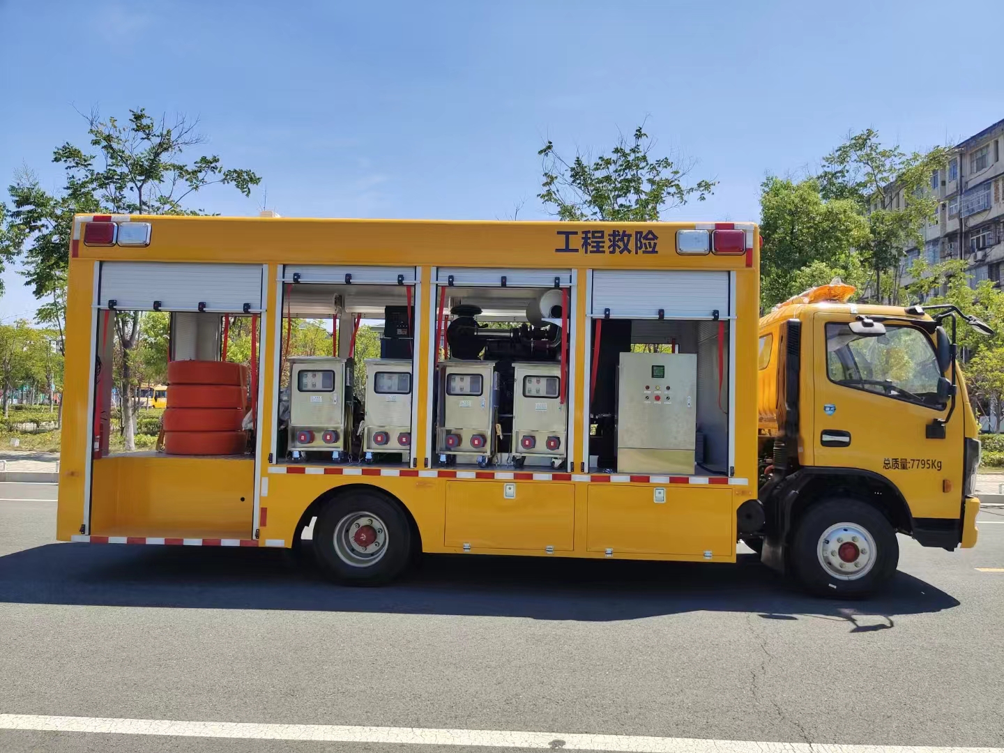 上裝配置  1、廂體外形尺寸根據實際公告標準。 廂體:具備運輸、防雨、防火、阻燃、防塵、防銹、降燥,隔震、長期抗震結構。外部鋼材為優質冷軋鋼板,表面處理平整,內襯優質冷軋鋼板折彎骨架,強度牢固,配重合理。 2、廂體一體化鋼體結構設計, 頂部平坦。廂體采用骨架式夾層形式,外蒙皮采用厚1.5mm優質防銹處理的汽車專用冷軋鋼板,中間骨架采用防銹處理后的鋼管焊接,頂層、側圍內、外層之間填充長時間使用對人體無害的防火阻燃環保吸音棉,外層鋪蓋一層阻燃金屬布,內飾采用0.8mm厚網孔板。底板采用鋼結構底框架,上表面鋪厚2mm花紋鋼板。 3、車輛廂體采用整體包覆式,廂體兩側下部設置裙邊式,全封閉式結構,頂部為圓弧型,尾部有轉向燈、剎車燈、尾燈、霧燈,箱體表面光滑平整。車廂靠駕駛室前部為休息室,休息室內帶折疊坐椅及折疊桌,往后為機組室,機組室左、右側布置進排風百窗,設置機組檢修門一個,下置登車踏步梯,車廂后端為后為卷簾門。右側排風百葉窗下部為維修觀察艙門。左側下圍設置有工具箱及功能艙門等。右側下圍設置有汽車油箱艙、液壓控制艙等。 4、車廂尾部配置標準儲物貨架讓出水帶、加長電纜等附件存放有序、互不干涉,讓緊急排水搶險變得更加快捷、有效。 5、廂體噴漆:工程黃,與車頭同一顏色; 6、最終的門數,形式,打開方式嚴格按照合同要求依據程力公告生產;