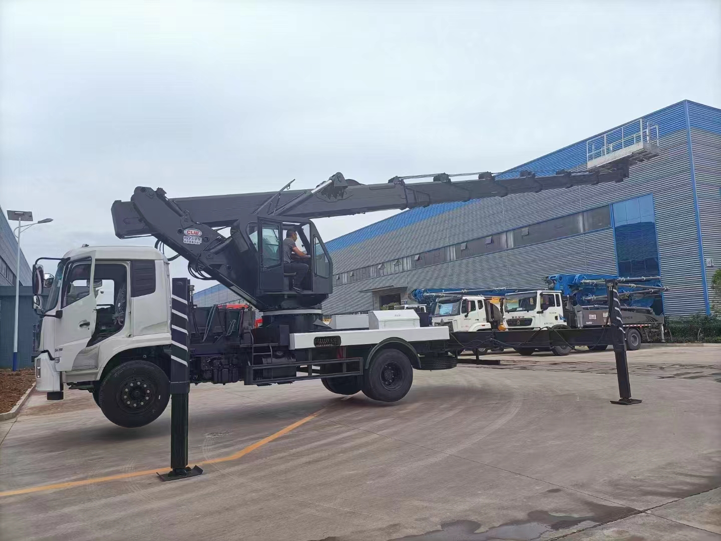 上裝配置 作業(yè)臂采用七節(jié)高強(qiáng)鋼同步伸縮作業(yè),最大作業(yè)高度45米,前V后V形支腿,支腿可單獨(dú)調(diào)節(jié),作業(yè)臂360度,平臺(tái)承重:200Kg 尺寸:1600x700x1000mm 應(yīng)急泵,自動(dòng)發(fā)動(dòng)機(jī)點(diǎn)火熄火,手動(dòng) 遙控 屏幕三方位操作;